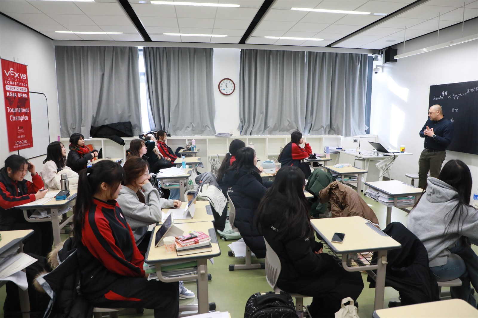 In the Psychology class, Teacher Zhang Huateng guided Korean and Chinese students to learn about knowledge related to personality disorders and neurodevelopmental disorders, including symptom manifestations and potential causes. Common symptoms among adolescents resonated strongly with the Korean students.
