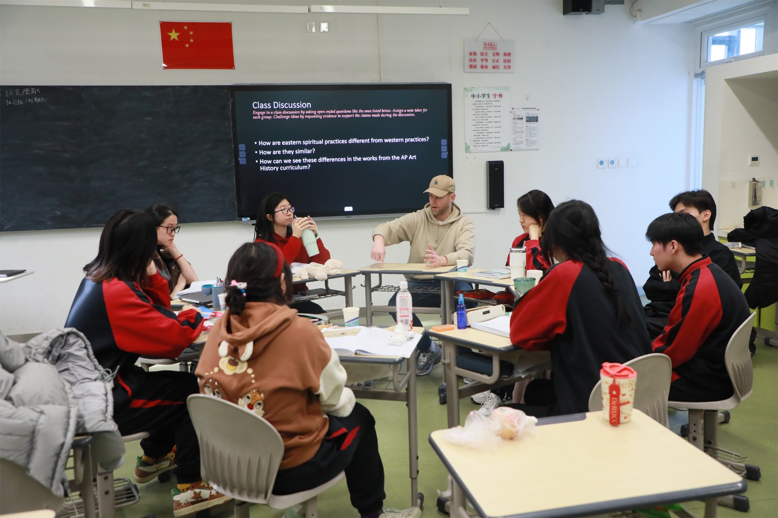 In the Art History class, students first compared Western and Eastern art through an open dialogue, followed by a lecture on the new art piece The Great Wave off Kanagawa. Finally, a team activity—a dictation competition—was held.
