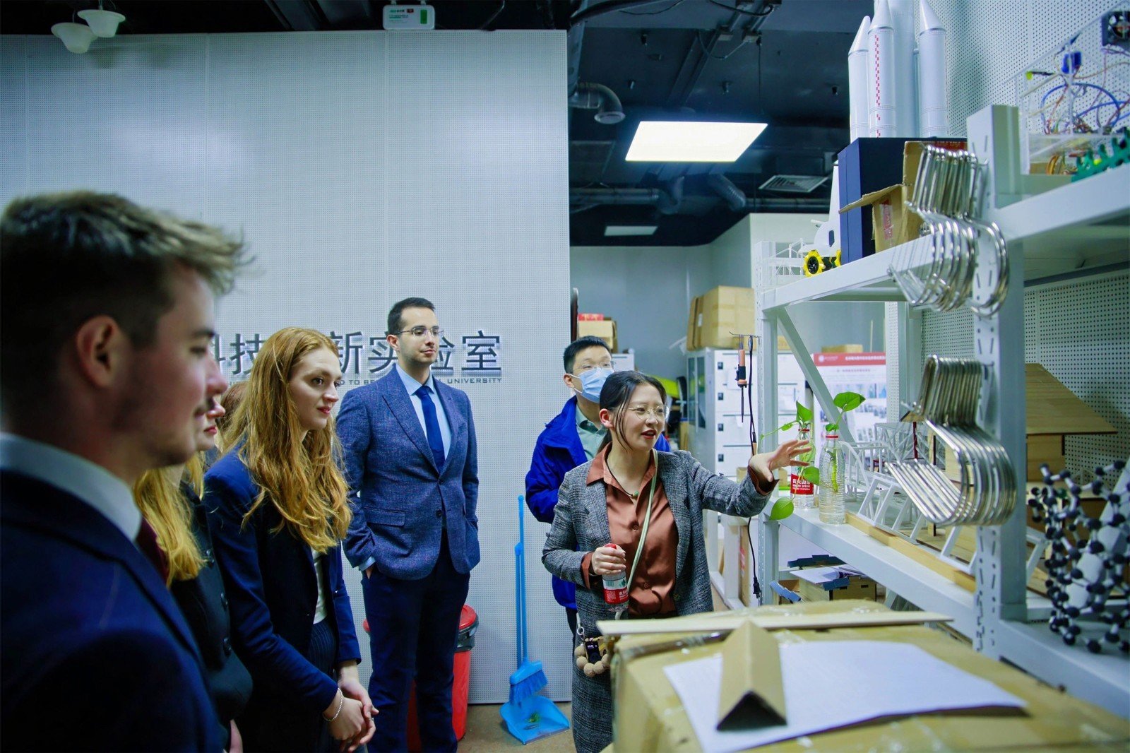 The Oxbridge scholars arrived early on campus and visited the Xingtan Art Gallery, Sanwei Bookstore, and Qian Xuesen Memorial Hall, expressing deep admiration for the school’s rich history and educational legacy. They later toured the Science and Innovation Laboratory and Smart Greenhouse, where they were fascinated by advanced facilities such as 3D printers and laser cutters, as well as by specialized courses including smart home design and bridge engineering, and the research achievements of the Jin Peng Science and Technology Team. They unanimously remarked that the visit gave them a deeper understanding and appreciation of the school’s educational facilities, curriculum innovation, and the well-rounded development of its students. Ms. Xiaolin Hu, a young faculty member and a Cambridge alumna from our school, also joined in hosting the delegation.
